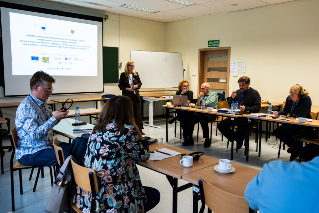 W ramach podstolika medialnego „Media a zrównoważony rozwój – wyzwania i kompetencje przyszłości” odbyło się podsumowanie Międzynarodowego Projektu SUMED: Sustainable multidimensional media contents, realizowanego na Uniwersytecie Gdańskim w ramach Programu Erasmus Plus, pod kierunkiem dr Beaty Czechowskiej-Derkacz. Spotkanie było okazją do zaprezentowania referatów, których tematyka dotyczyła wprowadzania celów zrównoważonego rozwoju w środowisku medialnym, a także podzielenia się doświadczeniem i dobrymi praktykami z realizacji projektu. W spotkaniu uczestniczyli m.in. przedstawiciele wszystkich uczelni partnerskich: prof. Ġorġ Mallia, dr Monika Masłowska (University of Malta), Milla Järvipetäjä (Turku University of Applied Sciences), dr Julio González Liendo (Universitat Politècnica de València), dr Dominik Chomik (Uniwersytet Gdański) oraz lider projektu: INNOCAMP PL. Wprowadzeniem w tematykę obrad był referat dr hab. Sylwii Mrozowskiej, prof. UG, dyrektorki Centrum Zrównoważonego Rozwoju Uniwersytetu Gdańskiego pt. „Zrównoważony rozwój jako wyzwanie cywilizacyjne. Czy uczelnie są na to przygotowane?”.